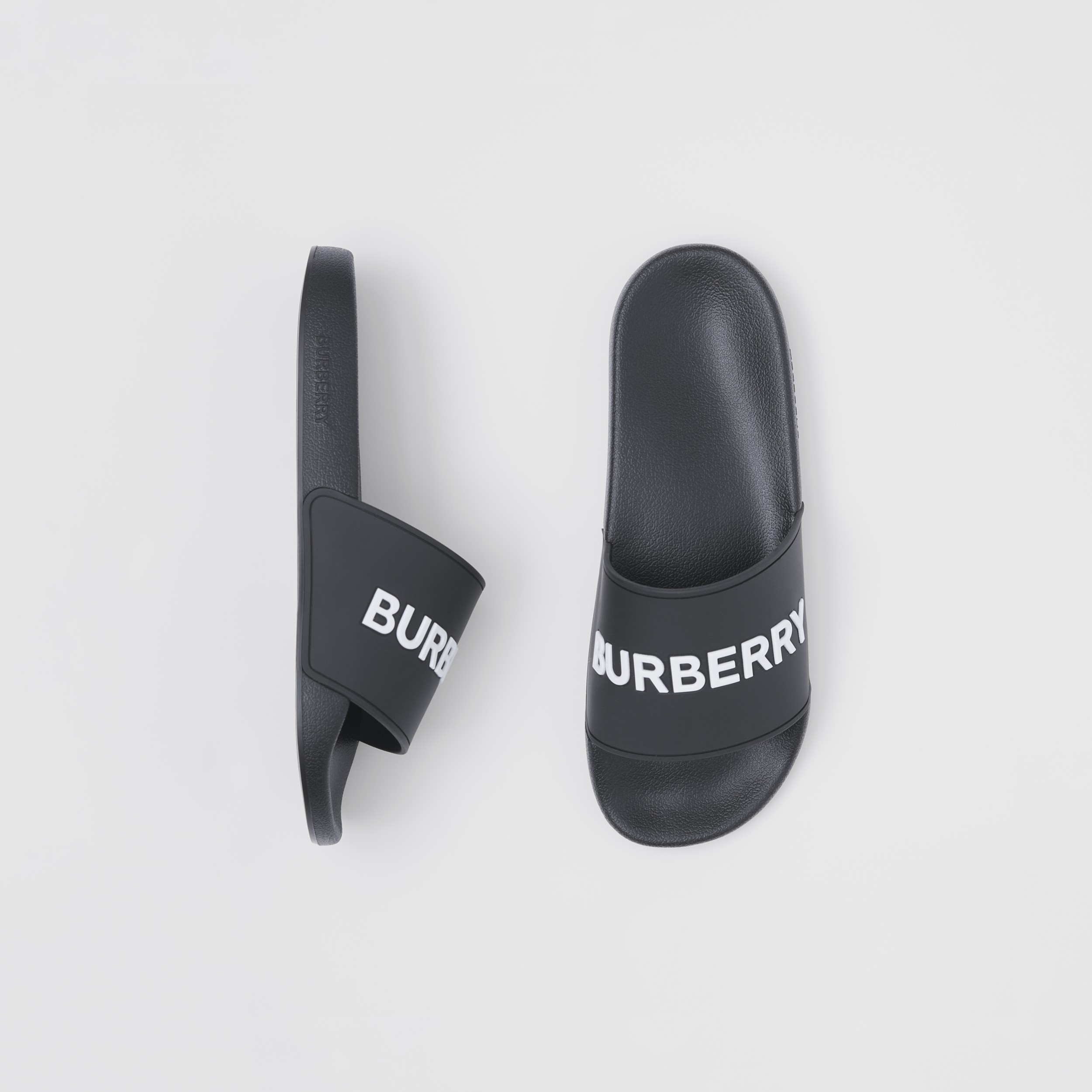 Logo Detail Two Tone Slides In Black Optic White Women Burberry Official
